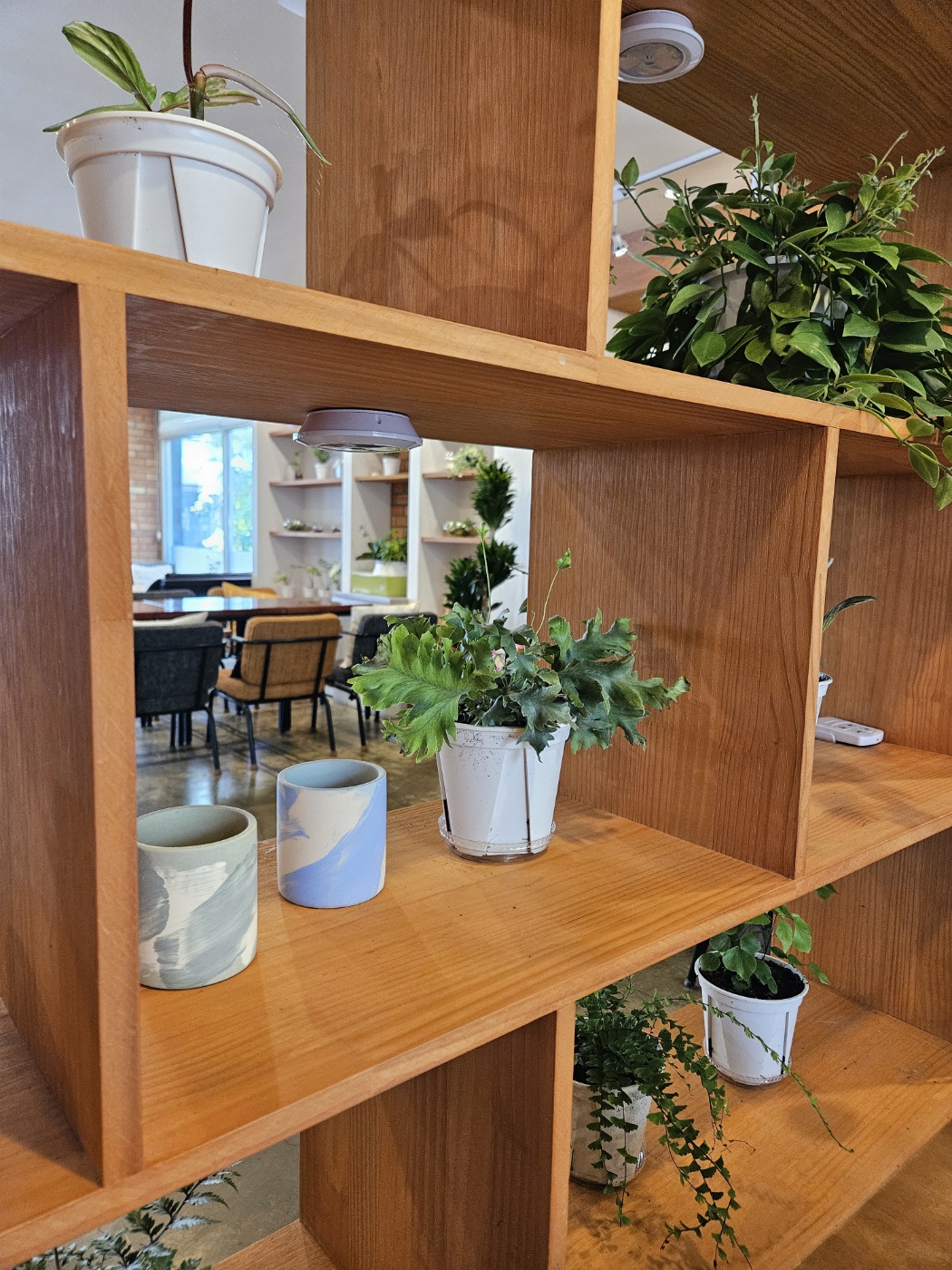 나중에 내 집에 서재를 만들면 이렇게 군포카페 라온제나처럼 파티션을 두고 곳곳에 식물들을 놓으면 좋겠다는 생각을 했어요.